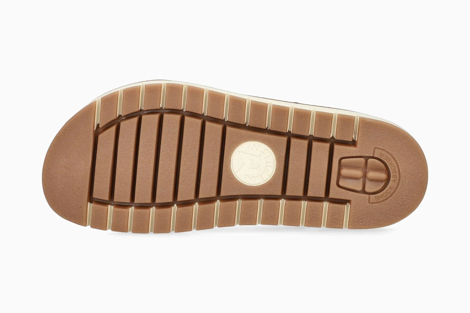 This feminine sandal, with its relaxed yet elegant look, is a summer essential. The SOFT-AIR midsole and the SHOCK-ABSORBER integrated in the outsole reduce shocks to a minimum for a smooth and fatigue-free walk. The AIR-RELAX technology perfectly matches the morphology of the foot and provides perfect support. The adjustable adhesive strap, with a decorative buckle, enables perfect adjustment for a very comfortable fit. Its leather lining promotes a healthy climate inside the shoe.