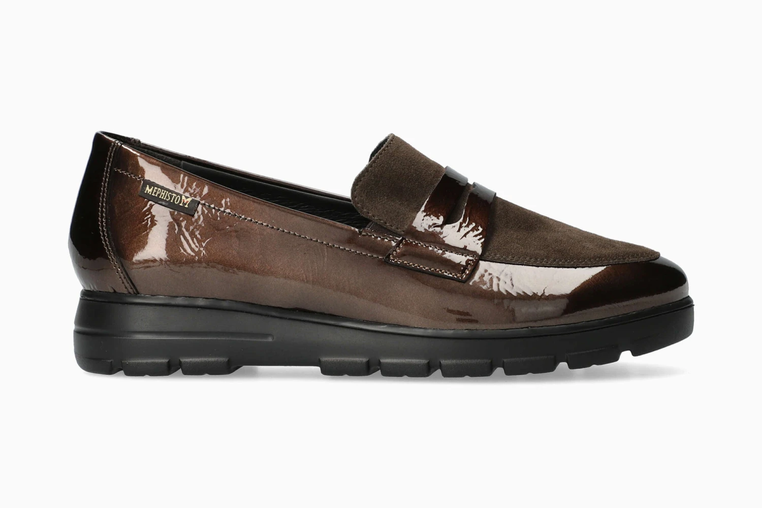 Our Carima women’s loafer takes classic a few notches higher, with a chunky sole featuring a subtle wedge for a touch of extra lift. Comfort and style come together in this sleek shoe: Bold design elements pair with the timely charming penny keeper aesthetic to create something new and exciting—blurring the lines between genres to create something both absolutely professional and undeniably cool. And speaking of cool, our unique perforated leather-lined insole circulates fresh air through the footbed with every step. That all-day ease of wear extends through the elasticized cut-outs that make slipping them on and off a joy. And that outsole does more than just lift: it’s slip-resistant and packs our exclusive SHOCK-ABSORBER heel insert for the lightest stride you can imagine.