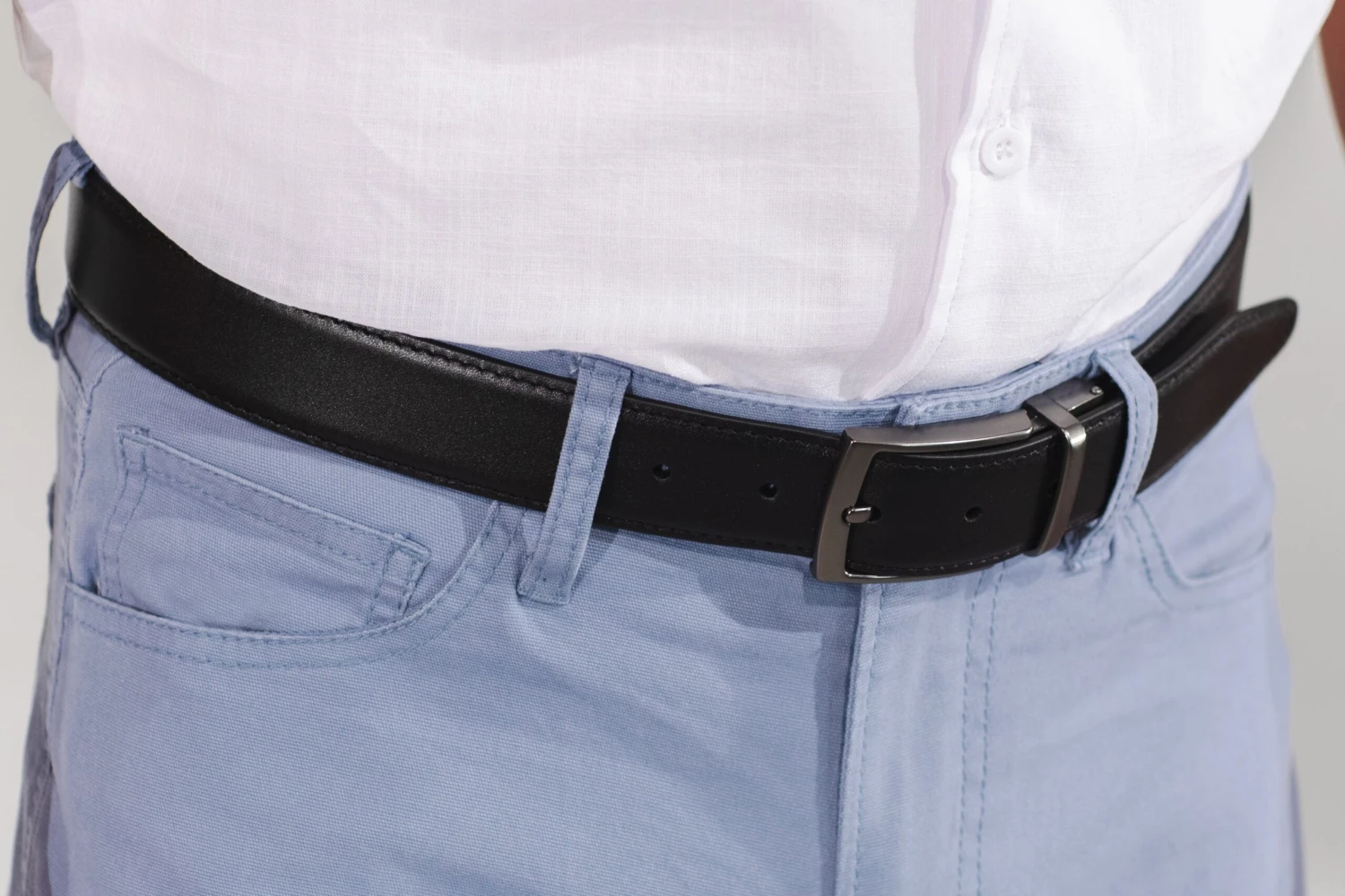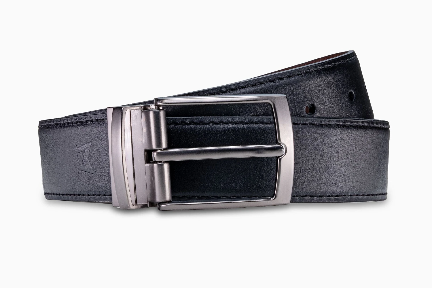 Versatility meets unmatched quality in our handsome Double Take belt, featuring reversible black-to-brown smooth leather and a polished gunmetal buckle. The result: one belt that suits your every formal need. Made in the USA of Italian leather. For best fit, we recommend sizing up 2 inches from your normal pant size. For example, if you normally wear a size 36 pant, choose a size 38 belt.