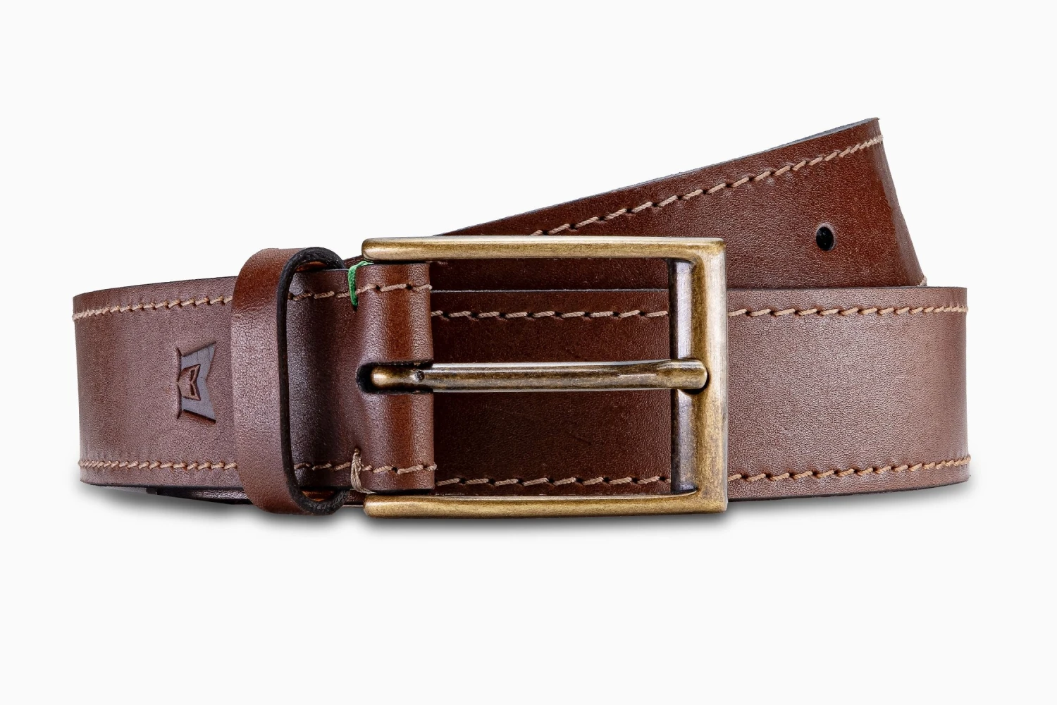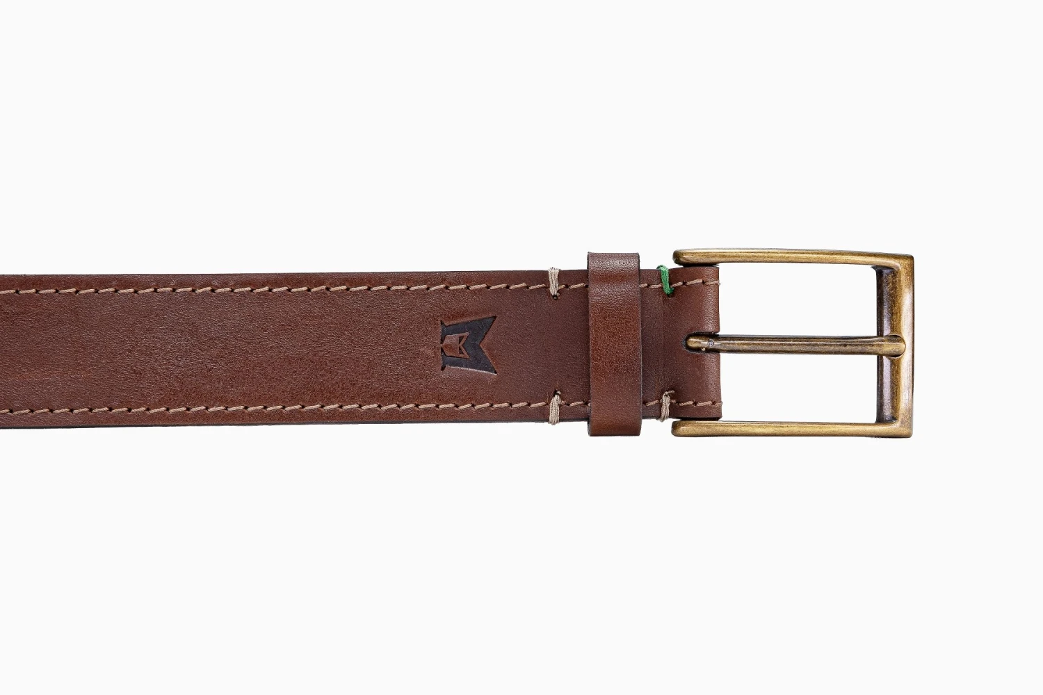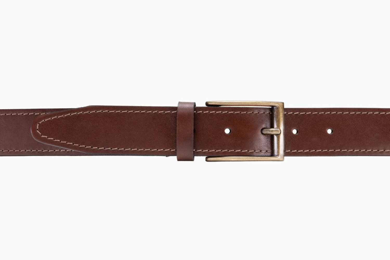 Our Edlef belt is designed to capture the same nonchalant elegance of our men’s loafer of the same name. It features smooth full-grain leather, a brushed brass buckle, and nubuck lining. Made in the USA of Italian leather. For best fit, we recommend sizing up 2 inches from your normal pant size. For example, if you normally wear a size 36 pant, choose a size 38 belt.