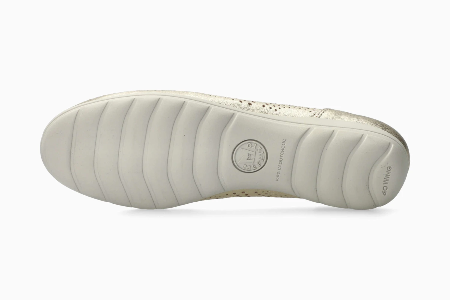 This exceptionally comfortable ballerina shoe sets itself apart with its lightweight, beautifully perforated design. The insole with integrated SOFT-AIR Technology guarantees an effortless walk with a spring in your step. It is equipped with our GOWING Technology: a flexible outsole, perfect for absorbing shocks. Its leather lining guarantees an excellent fit and optimum comfort. This ballerina for women is made of metallic-effect leather.