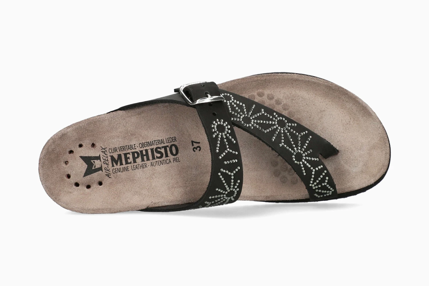 This ladies’ lightweight toe post sandal is a must for a relaxed summer. It seduces with its rhinestones. The unique SOFT-AIR technology integrated into the cork midsole guarantees fatigue-free walking. The AIR-RELAX technology respects the anatomy of the foot to prevent fallen arches. Adjustable strap with buckle fastening.