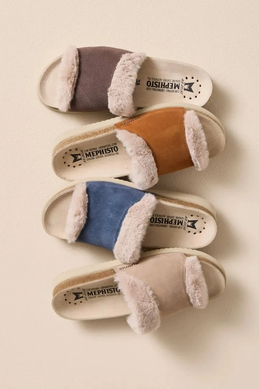 Picture the warmest, most comfortable, cozy, women’s sandals you can imagine – the ultimate lazy Sunday, slip-on-and-sip-your-coffee companions. Now go and slip them on for real! Meet the Hemeline: part trendy, part carefree, 100% plush and luxurious. Below, your feet are treated to our famous suede-lined molded cork footbed, with integrated SOFT-AIR and AIR-RELAX technologies working together to cushion and support your feet for dreamlike comfort. And then wrapping your feet from above, a sumptuous faux-fur lining gives you a bespoke fit and just the right amount of breathable warmth. Once you unbox them, you’ll wonder how you ever did weekends without them.