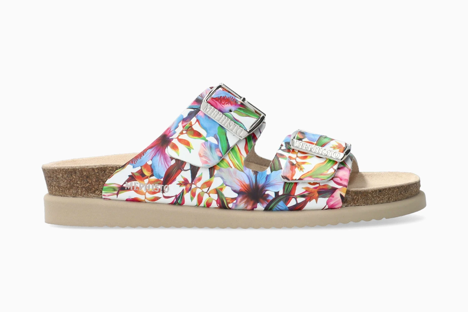 A sandal with timeless appeal and Bohemian charm, this laid-back mule is a must for concerts, wine tasting, bonfires, and more. With a wide range of both classic and trendy styles and finishes that include suede, full-grain, or nubuck leather, you can find exactly the vibe (or vibes) you’re going for. The leather-lined footbed and cork midsole offer outstanding, luxurious comfort for long stretches on your feet – and that’s a good thing, because if it’s happening, you’re there. Look great, feel even better. These are going to be your go-to, go-anywhere sandals for years to come. This multicolored mule for women is made of floral-print leather.