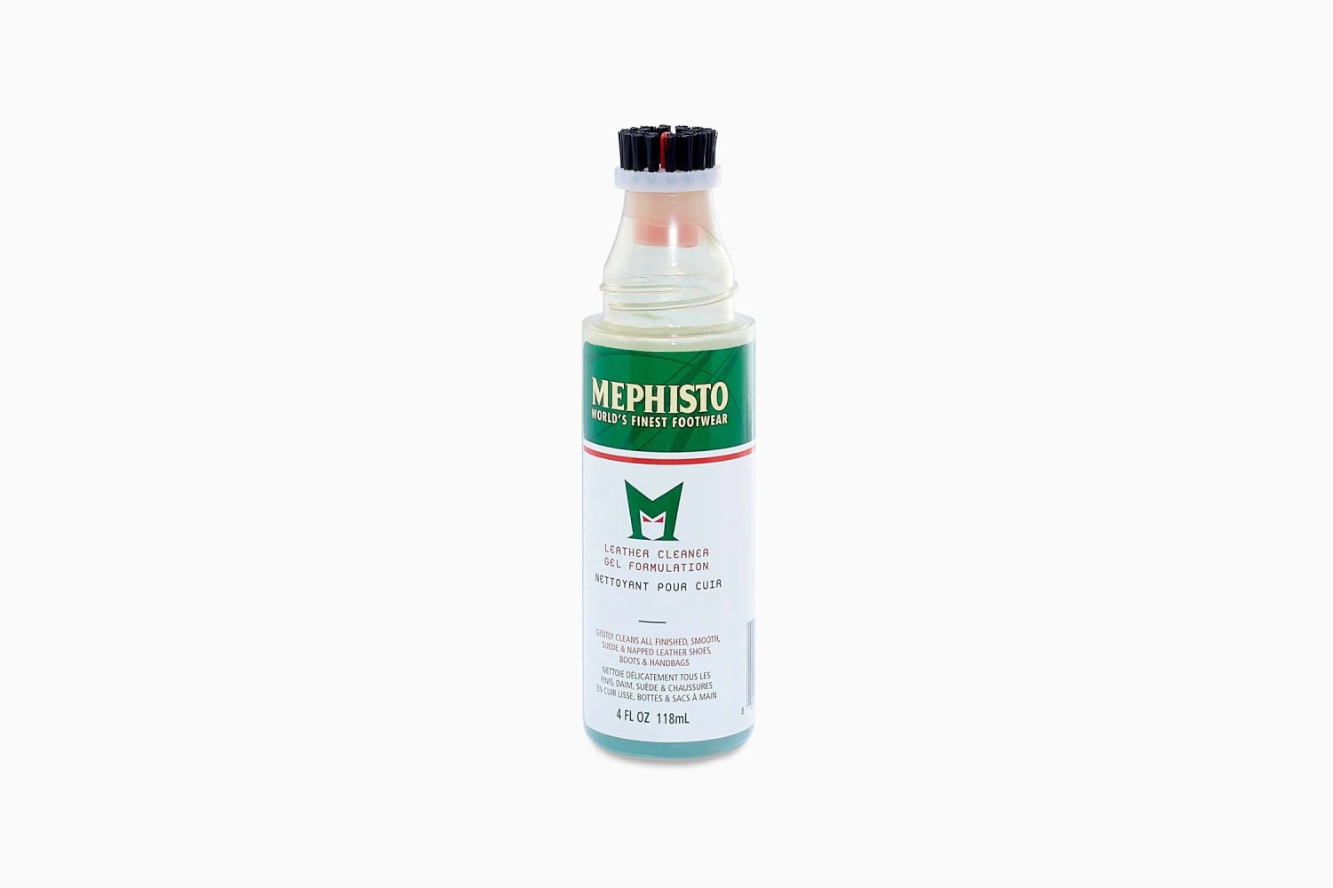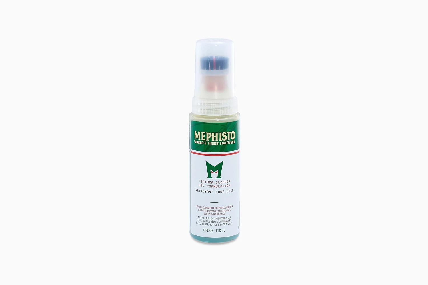 Mephisto Leather Shampoo gently cleans all smooth, suede & napped leather shoes, boots & handbags. 4 oz. bottle with attached cleaning brush.