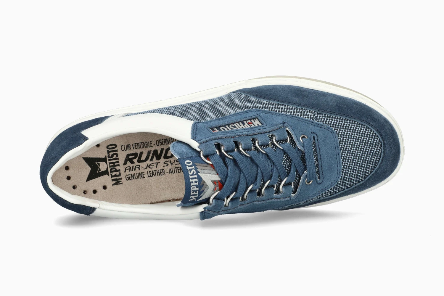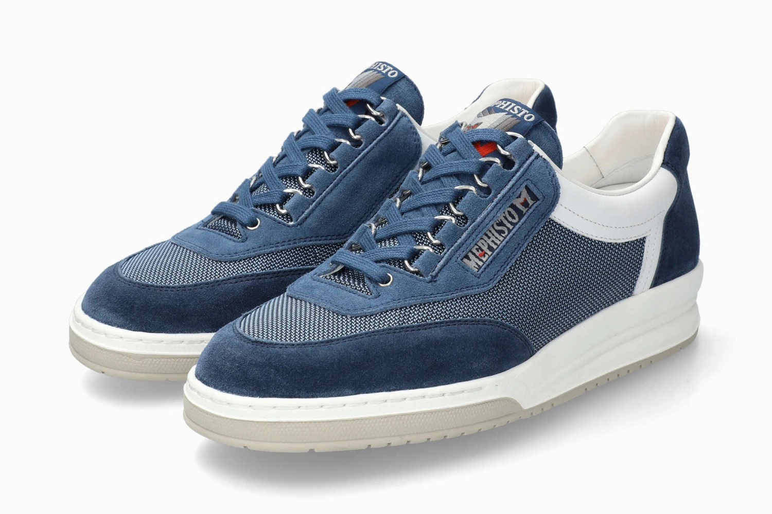 An iconic quick-lace shoe, revisited in a combination of leather with a touch of textile, perfect for a casual look. The unique SOFT-AIR technology integrated into the midsole ensures fatigue-free walking. The leather lining ensures a healthy climate inside the shoe. This blue model for men is made of suede and nubuck leather over the whole foot, and textile on the front and sides of the foot.