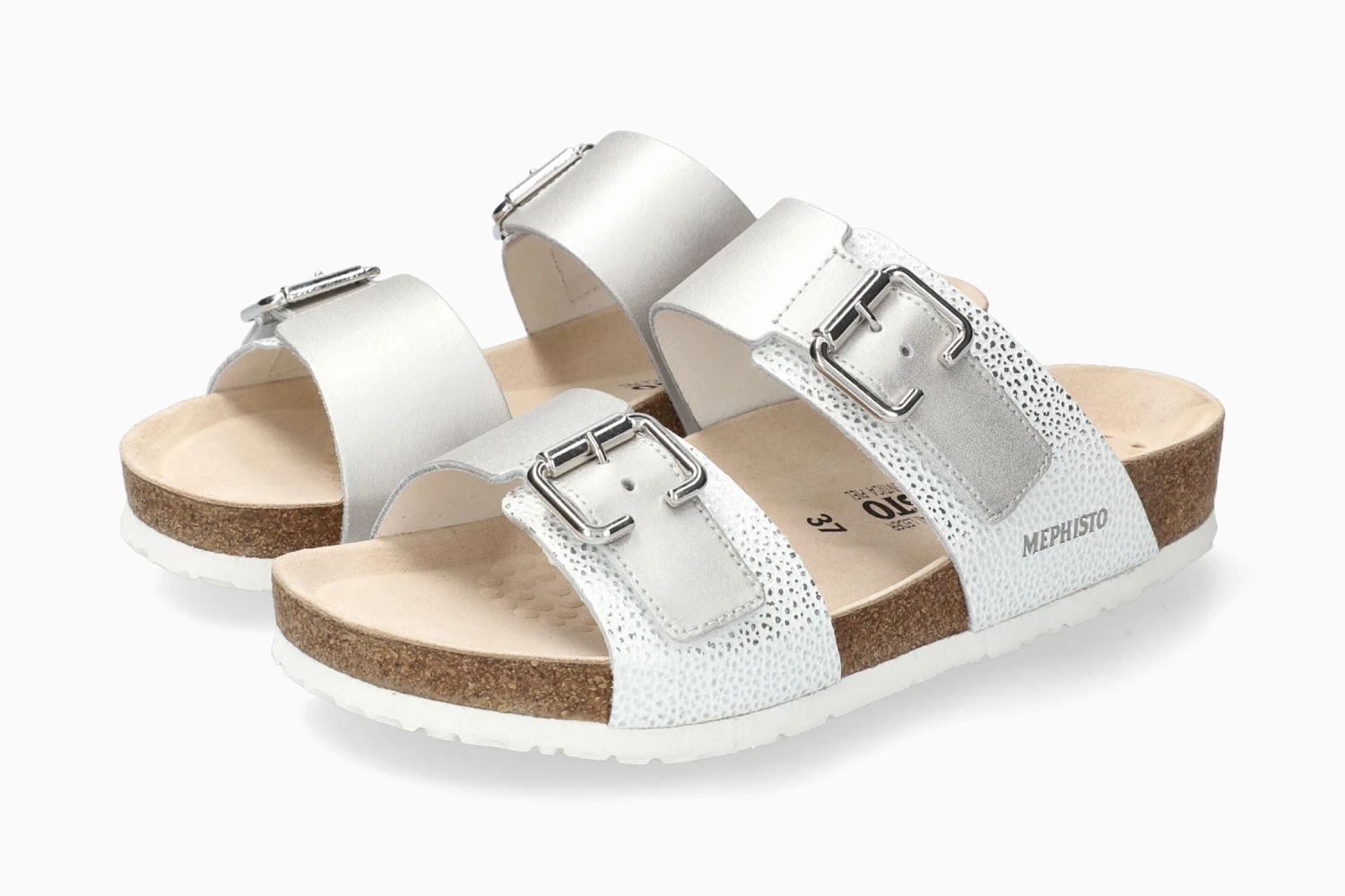 This feminine sandal, with its relaxed yet elegant look, is a summer essential. The unique SOFT-AIR technology integrated in the cork foot-bed guarantees an effortless walk. The AIR-RELAX technology respects the anatomy of the foot to prevent fallen arches. The adjustable adhesive straps, with decorative buckles, ensure perfect comfort and an exceptional fit.