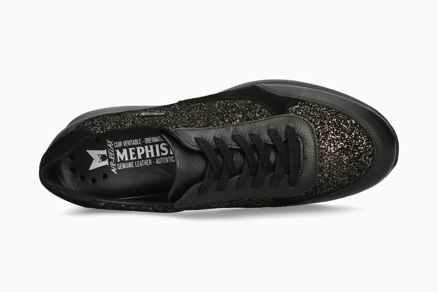 This on-trend sneaker with its trendy design will suit all your everyday needs. The removable insole with SOFT-AIR Technology and the SHOCK-ABSORBER in the outsole help to reduce shock to a minimum for a smooth, fatigue-free walk. AIR-RELAX technology respects the anatomy of the foot to prevent the arch from collapsing. The lacing system ensures quick, pressure-free fastening and adapts perfectly to the anatomy of the foot. The leather lining ensures healthy foot hygiene. This women’s model is made from smooth grained leather on the front and back of the foot, with inserts in animal-print metallic-effect leather and metallic-effect leather.