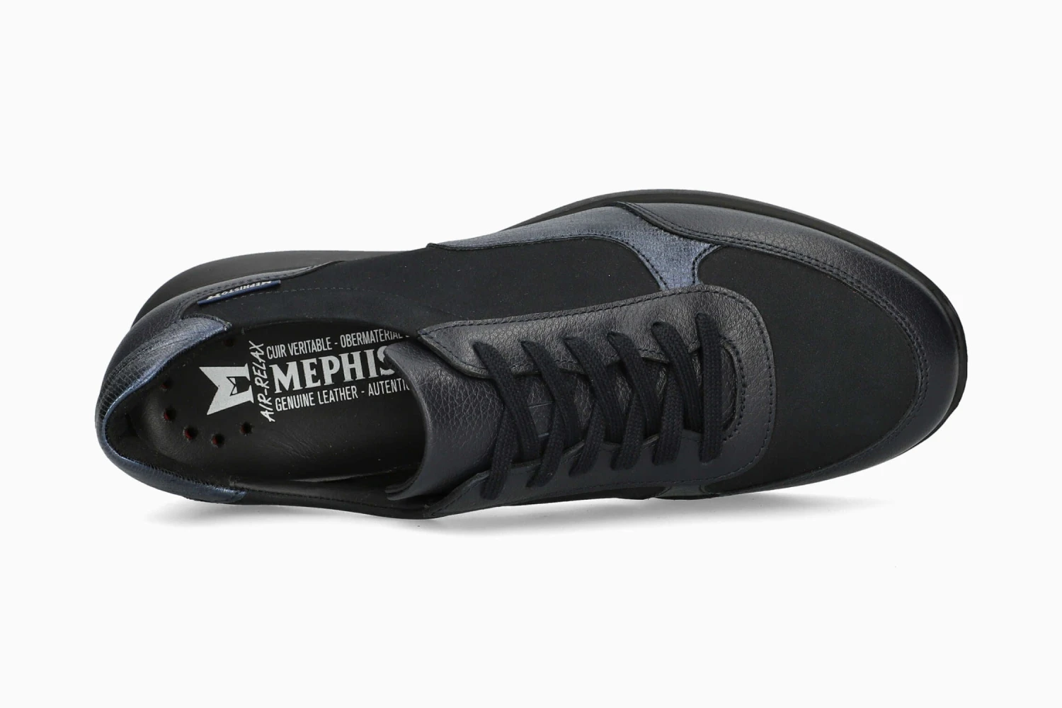 This on-trend sneaker with its trendy design will suit all your everyday needs. The removable insole with SOFT-AIR Technology and the SHOCK-ABSORBER in the outsole help to reduce shock to a minimum for a smooth, fatigue-free walk. AIR-RELAX technology respects the anatomy of the foot to prevent the arch from collapsing. The lacing system ensures quick, pressure-free fastening and adapts perfectly to the anatomy of the foot. The leather lining ensures healthy foot hygiene. This blue women’s model is made from smooth grained leather all over the foot, with nubuck leather and crinkled metallic-effect leather inserts.