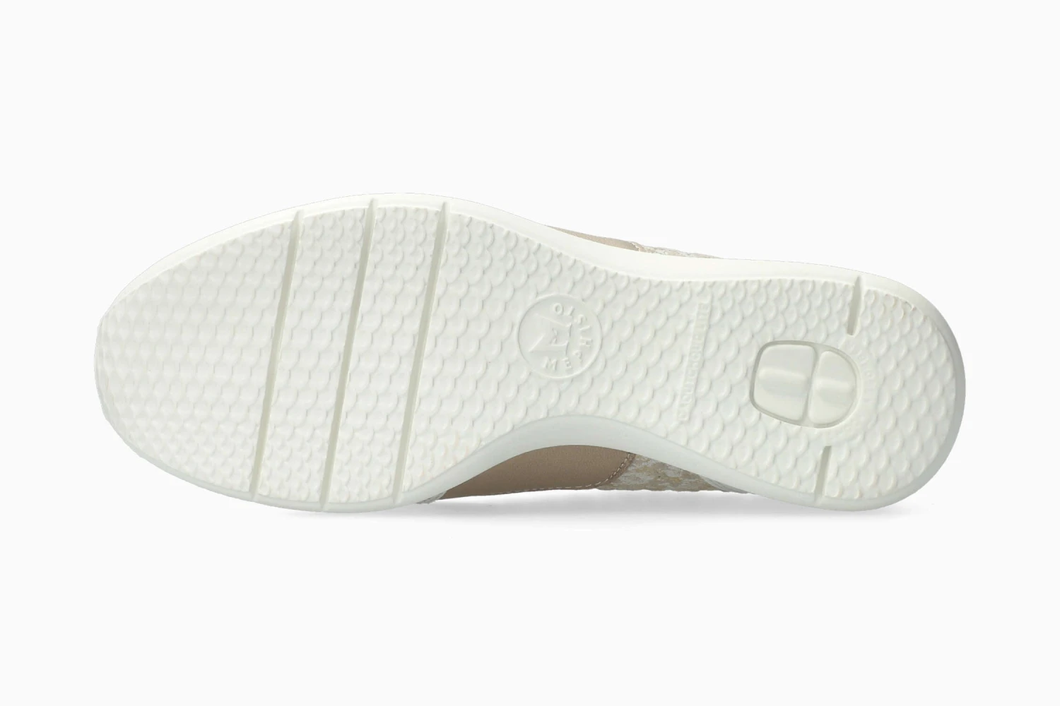 This on-trend sneaker with its trendy design will suit all your everyday needs. The removable insole with SOFT-AIR Technology and the SHOCK-ABSORBER in the outsole help to reduce shock to a minimum for a smooth, fatigue-free walk. AIR-RELAX technology respects the anatomy of the foot to prevent the arch from collapsing. The lacing system ensures quick, pressure-free fastening and adapts perfectly to the anatomy of the foot. The leather lining ensures healthy foot hygiene. This women’s model is made from smooth grained leather on the front and back of the foot, with inserts in a metallic print.