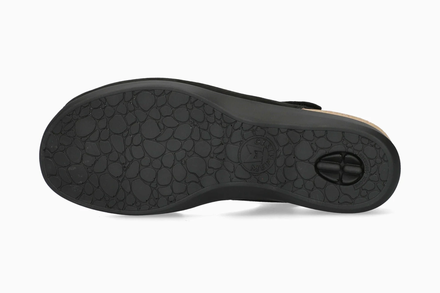 Feminine and elegant, this wedge heel sandal guarantees an ideal fit. Enjoy unparalleled comfort thanks to the SHOCK-ABSORBER, in the outsole, and its SOFT-AIR midsole, which help to reduce impact from walking. The AIR-RELAX technology respects the anatomy of the foot to prevent fallen arches. The adjustable adhesive strap ensures an excellent fit. The leather lining ensures a healthy climate inside the shoe.