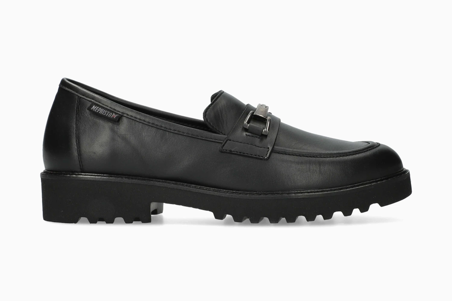 Feminine and elegant, this moccasin offers exceptional quality and optimum comfort. The SHOCK-ABSORBER in the outsole, combined with the removable insole featuring SOFT-AIR Technology, help to absorb the shocks inherent in walking. The leather lining ensures a healthy climate inside the shoe. The embellishment on the forefoot is a perfect blend of sophistication and modernity. This black women’s model is made from smooth leather.