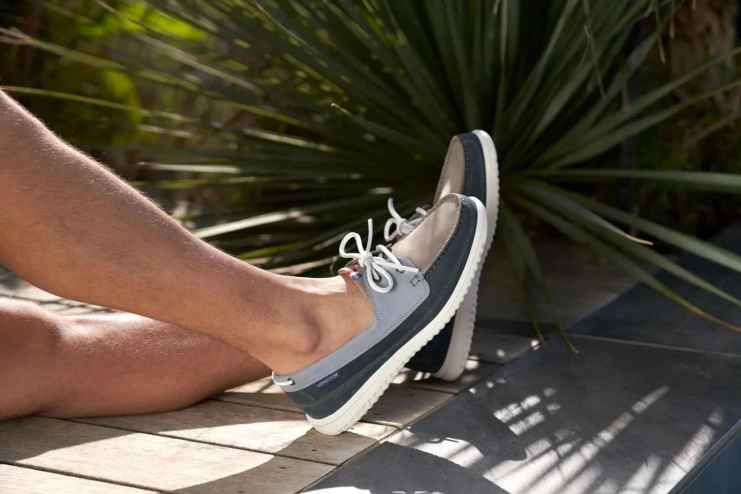 Whether you’re spending a day on (or near) the water, or just strolling the city streets, the Trevis offers timeless style blended with casual sophistication – and more than a touch of nautical charm. This shoe combines the best qualities of a sneaker and a boat-style shoe for a look that’s both timeless and timely, elevating any outfit with its undeniable head-turning craftsmanship. The rich, supple full-grain leather provides beauty, durability, and unmatched comfort. Combine that with our industry-exclusive SOFT-AIR insoles wrapping your feet in all-day/everyday luxury and impact-absorbing outsoles soaking up the strides, you’ll be inventing excuses to slip them on. This blue boat shoe for men is made from nubuck leather.