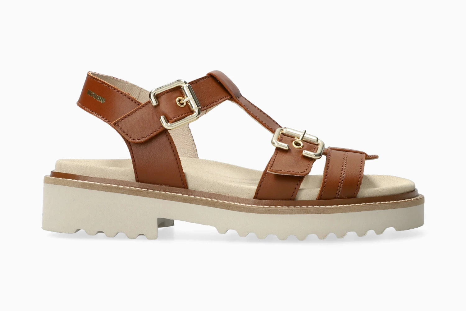This sandal can be adapted to suit all styles and tastes. The SOFT-AIR midsole and SHOCK-ABSORBER integrated into the outsole reduce shock to a minimum for a smooth, fatigue-free walk. AIR-RELAX technology respects the anatomy of the foot to prevent arch collapse. This sandal combines an adjustable hook-and-loop strap with a decorative buckle on the ankle and a perforated strap with a functional buckle on the instep, for a perfect fit and comfort. Its leather lining ensures a healthy climate inside the shoe. This brown sandal for women is made of smooth leather.